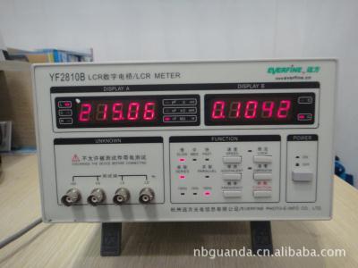 YF2810B数字电桥 点击放大 公司名称宁波鄞州冠达商贸有限公司 产品型号YF2810B 产品简介采用国际先进的高精度电桥测试原理,仪器的所有控制、测量、计算和显示均在MCU的控制下进行,使仪器具有精度高、动态范围宽、速度快、稳定性好的特点。0.1%的基本精度和高分辨率的显示对于元件的质量和可靠性的提高将有莫大的帮助。本仪器可广泛用于工厂、院校、研究所、计量质检部门等对各类电感、电容和电阻元器件的参数进行精确测量、批量分选等方面的需要。 详细说明 技术特性: 1) 测试参数:L/Q、C/D、R/Q; 2) 测试频率:100Hz、1kHz、10kHz; 3) 测试电平:0.3Vrms; 4) 测量范围: R:0.0001Ω to 99.99MΩ; C:0.01pF to 99999μF; L:0.01μH to 9999H; D:0.0001 to 0.99999; Q:0.001 to 999.99;