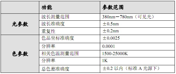 ● 可测量相关色温,色品坐标(x, y, u, v),显色指数,色容差等参数;